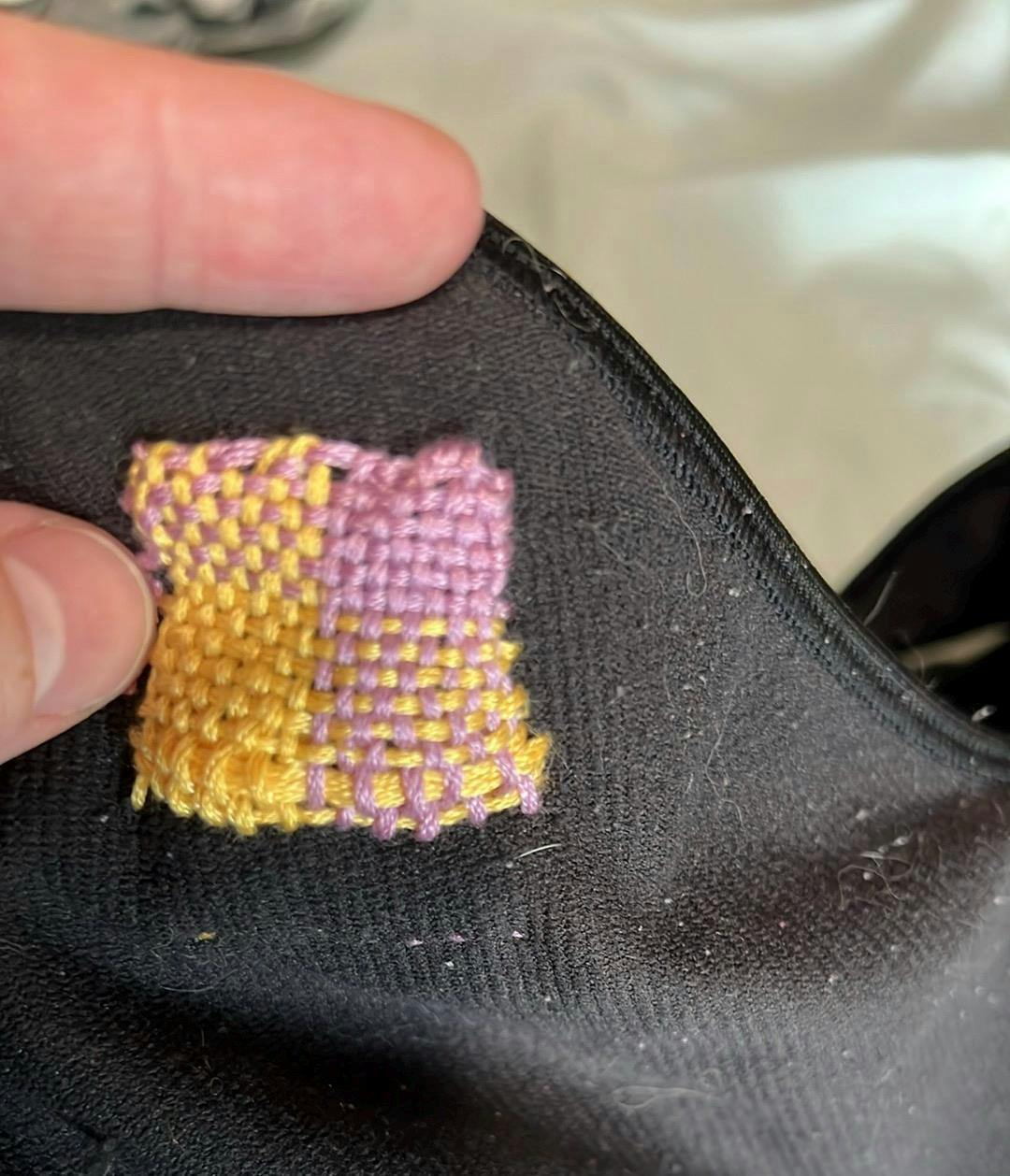 This ingenious device allows you to easily warp your mending thread over the area in need of repair. Simply swipe the hooks from side to side to weave your thread through your warped threads and create a stylish patch! It is beautifully designed, comfortable and practical for all your darning, repairing and little art weaving tasks. Fixing holes in jeans, socks and shirts is quick and easy with a Speedweve-style loom.