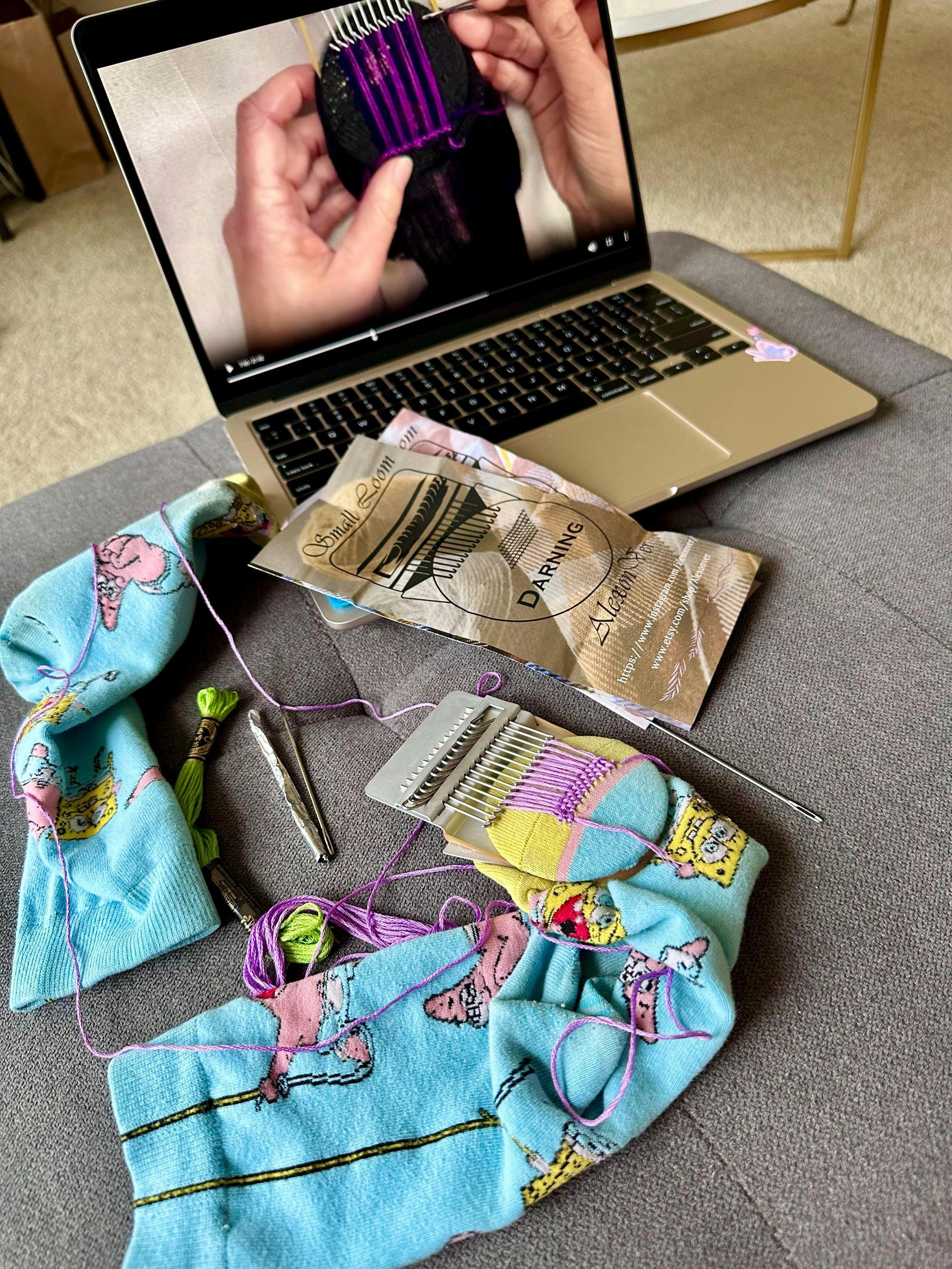 Darning loom, Speedweve type, Rapid darner, Mom hobie, with a set of needles and yarns