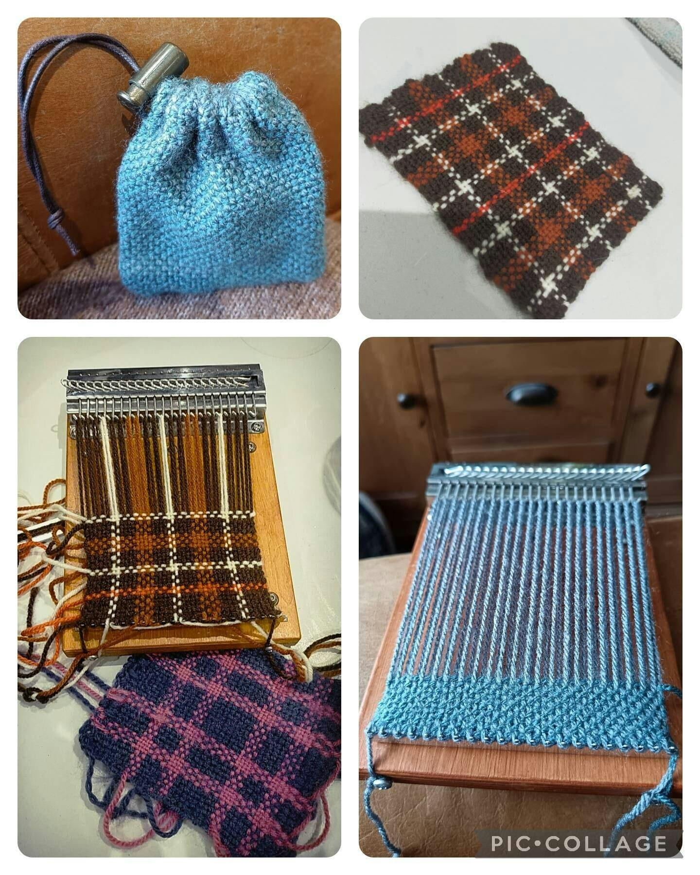 In principle is a marvelous invention that makes the weaving of materials fast, easy and simple. The operation of this weaver does not tire the eyes but actually guiets the nerves. The construction of this weaver is such that two sides are adjustable therebly making it possible for one to make as many as 7 different sized blocks of woven material. This feature enables one to devise new patterns, color schemes and designs for afghans, dresses, coats, sweaters, suits, caps, scarves, as well as many other useful things. The set includes: a wooden platform, a body with hooks, two types of side walls, two sizes of bottom walls, a hook and a needle about 6 inches, a key for screws and instructions. (dimensions 5.1х7.6 inches.).